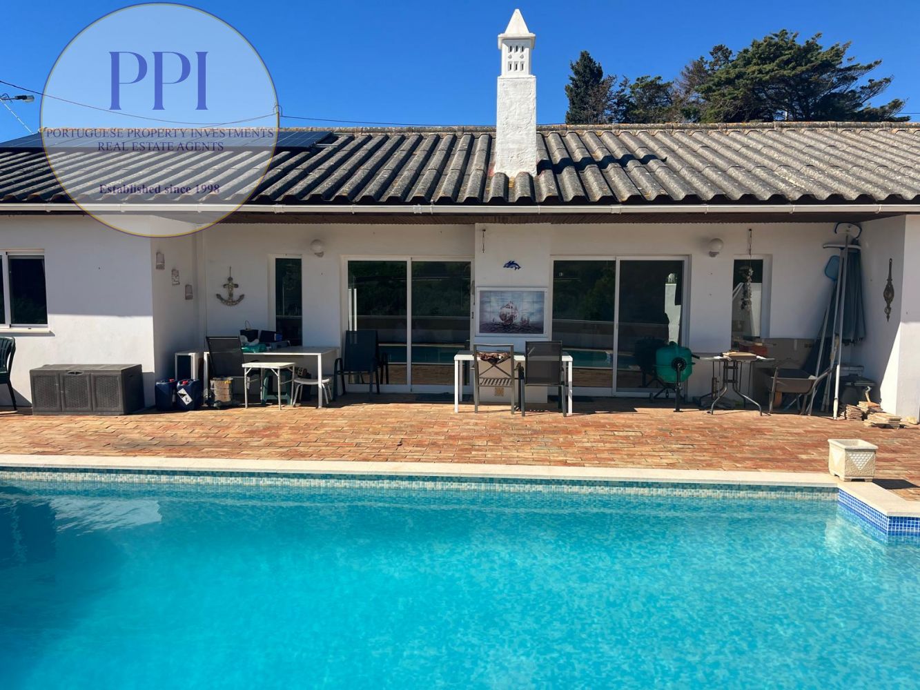 Esta moradia oferece uma planta espaçosa com 4 quartos e piscina privativa, situada num amplo terreno de 3440 m². As principais características incluem eletricidade e água da rede pública, garagem e dependências exteriores substanciais. A cozinha totalmente equipada é complementada por uma grande lavandaria, enquanto a moradia é térrea e dispõe de 2 casas de banho, aquecimento central e ar condicionado. A piscina é alimentada por painéis solares. A zona da piscina necessita de algumas reparações. A propriedade inclui um jardim lindamente ajardinado com laranjeiras e limoeiros. Com fácil acesso pela Estrada Nacional 125 e interior parcialmente mobilado, é uma opção atrativa, com preço de venda de 695.000€. Recomenda-se vivamente uma visita para apreciar plenamente o seu potencial.